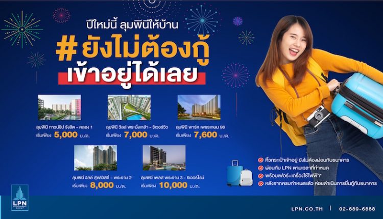 บริษัท แอล.พี.เอ็น.ดีเวลลอปเมนท์ จำกัด(มหาชน) (LPN) ประเดิมกระตุ้นตลาดต้นปี เปิดตัวแคมเปญใหม่ “ยังไม่ต้องกู้ เข้าอยู่ได้เลย” ให้ลูกค้าผ่อนดาวน์ได้ 2 ปี เริ่มต้นที่ 5,000 บาท แถมฟรีเฟอร์นิเจอร์ เครื่องใช้ไฟฟ้า พร้อมเข้าอยู่ได้ทันทีกับ 5 โครงการเด่น หวังจับกลุ่มฟรีแลนซ์ ค้าขายออนไลน์ หรือผู้ที่ไม่ได้มีรายได้ประจำ สร้างโอกาสให้ลูกค้ามีบ้านได้ง่ายขึ้นในราคาที่จับต้องได้ (Affordable Price) ตามเจตนารมณ์ของ LPN ที่ต้องการให้คนไทยมีบ้านเป็นของตนเองภายใต้แบรนด์ “ลุมพินี”
