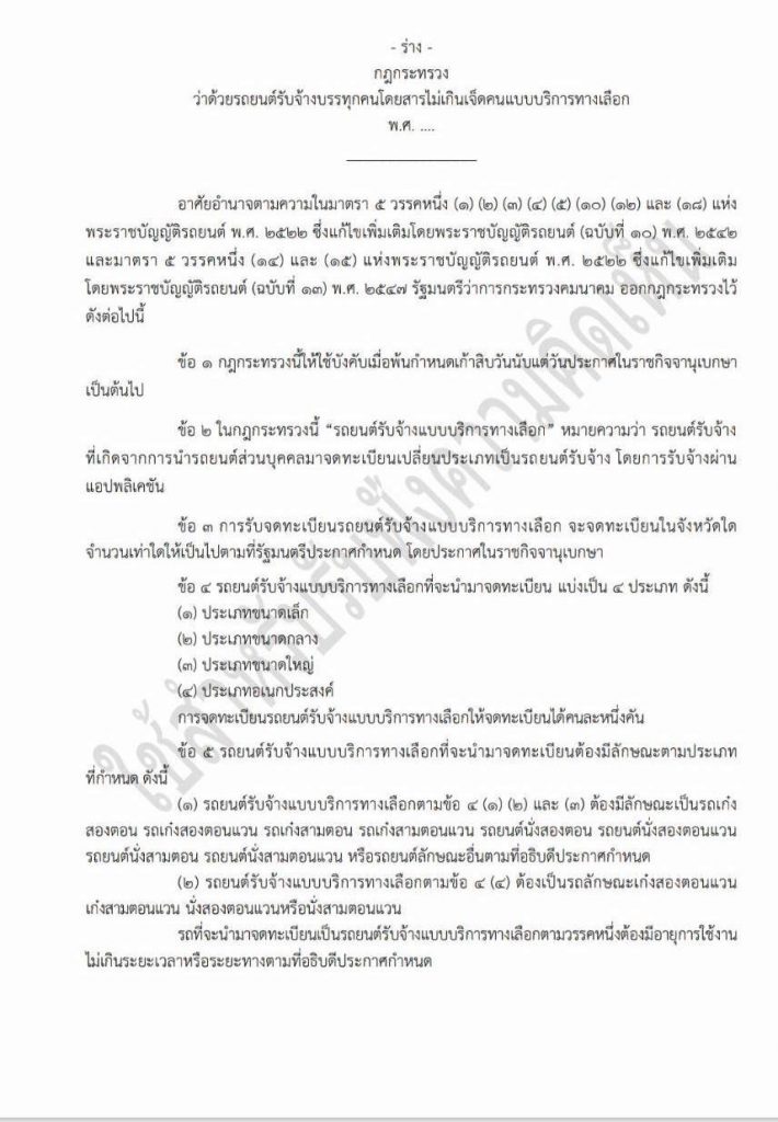 ดร.สุทธิกร กิ่งแก้ว หัวหน้าโครงการศึกษาและวิจัย CONC Thammasat ม.ธรรมศาสตร์ กล่าวถึงร่างกฎกระทรวงว่าด้วยรถยนต์รับจ้างบรรทุกคนโดยสารแบบบริการทางเลือก พ.ศ. …. (ร่างกฎกระทรวงฯ) จัดทำโดยกระทรวงคมนาคม ว่า ส่วนตัวสนับสนุนให้มีการนำรถยนต์ส่วนบุคคลมาจดทะเบียนเพื่อให้บริการรับจ้างผ่านแอปพลิเคชันและเข้ามาอยู่ในระบบอย่างถูกต้องตามกฎหมาย